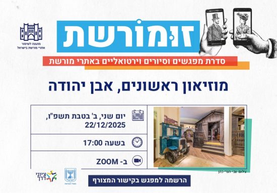 יום שני, ב' טבת תשפ"ו, 22 בדצמבר 2025 – מוזיאון ראשונים אבן יהודה: להרשמה לחצו כאן