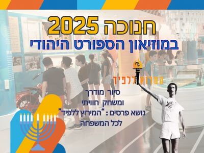 פעילות חנוכה חגיגית לכל המשפחה תתקיים במוזיאון הספורט היהודי העולמי בכפר המכביה. בין הימים שלישי עד שני, 16 – 22 בדצמבר, יתקיימו במוזיאון פעילויות מלאות השראה, מעשירות וערכיות ברוח חג האור, התקווה וניצחון הרוח. ניתן יהיה להנות מסיור מרתק על ציר הזמן של הספורט היהודי מהמאה ה-19 ועד היום – בין סיפורי הישג וגבורה, נחישות ואמונה. באמצעות תצוגה אינטראקטיבית מרהיבה ומעל 1,000 פריטים ומוצגים נדירים שנאספו מרחבי העולם, נחשפת במהלך הסיור רוח האדם שמאחורי המאבקים, הניצחונות והזהות היהודית המתחדשת. הסיור יעסוק גם במסורת מרוץ הלפיד, על משמעות האש והאור כסמל להמשכיות, לחירות ולרוח שאינה נכבית. משך הסיור כשעה ורבע. מתאים גם לקבוצות.