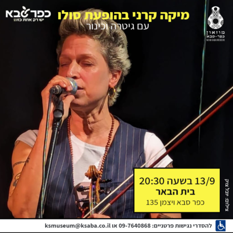 מוזאון כפר סבא מזמין את הציבור הרחב להופעה אקוסטית של הזמרת והיוצרת מיקה קרני.