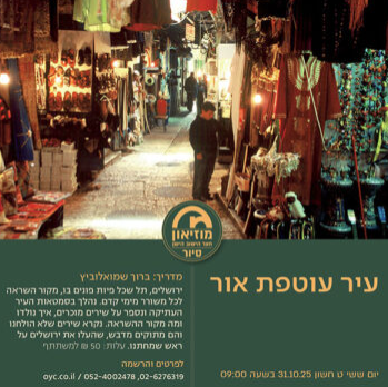 ירושלים, תל שכל פיות פונים בו, מקור השראה לכל משורר מימי קדם. נהלך בסמטאות העיר העתיקה ונספר על שירים מוכרים,