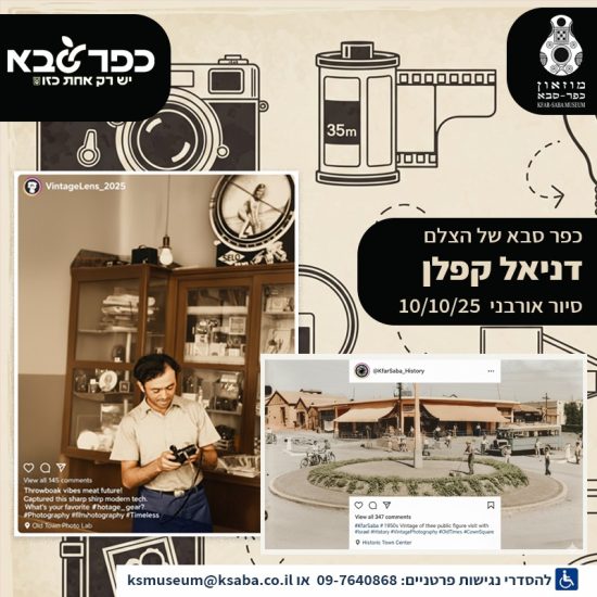 מוזאון כפר סבא מזמין את הציבור הרחב להצטרף לסיור אורבני מרתק במרכז ההיסטורי של כפר סבא, סיור שיעבור בנקודות העניין המרכזיות של העיר, מבנים לשימור ואתרי מורשת כפי שהשתקפו בעדשת המצלמה של קפלן.