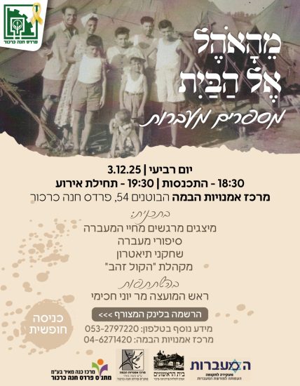 אנו מזמינים אתכם/ן לאירוע חגיגי ומרגש המספר את סיפורן של המעברות.
