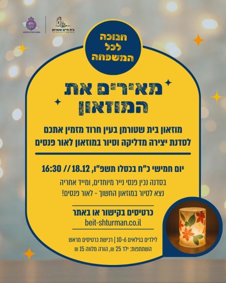 פעילות חנוכה מדליקה לכל המשפחה במוזאון בית שטורמן, עין חרוד