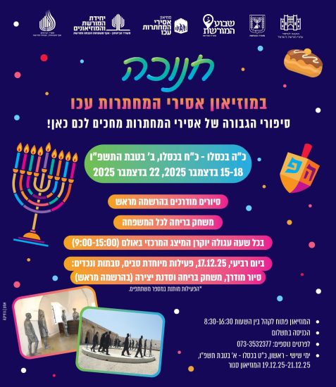 ימים שני-חמישי, כ"ה בכסלו-כ"ח בכסלו, ב' בטבת תשפ"ו, 18-15, 22 בדצמבר 2025