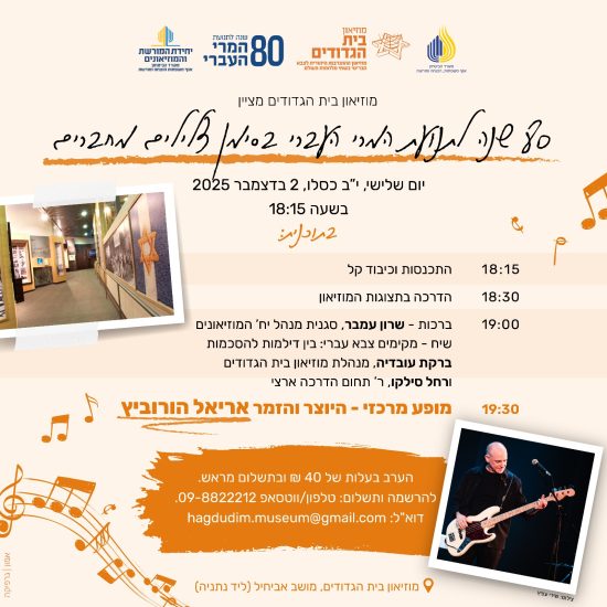 להרשמה ותשלום: טלפון/ווטסאפ: 09-8822212 | דוא"ל: hagdudim.museum@gmail.com