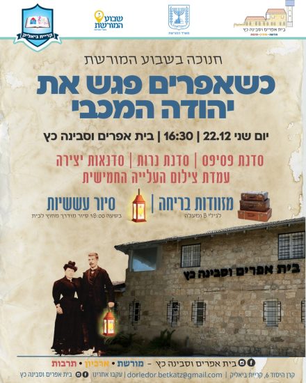 נשמח לראות אתכם בבית אפרים וסבינה כץ המקום שבו העבר פוגש את ההווה באור חנוכה מיוחד.