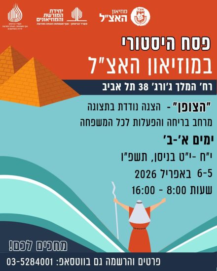 פרטים והרשמה גם בווטסאפ: 03-5284001