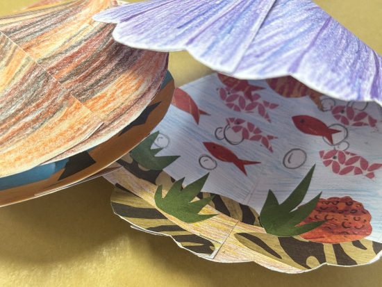 בסדנה ניצור צדף נפתח מבריסטול, ובתוכו עולם ימי כיד הדמיון: שונית אלמוגים, שקיעה קסומה או אוצרות טבועים.