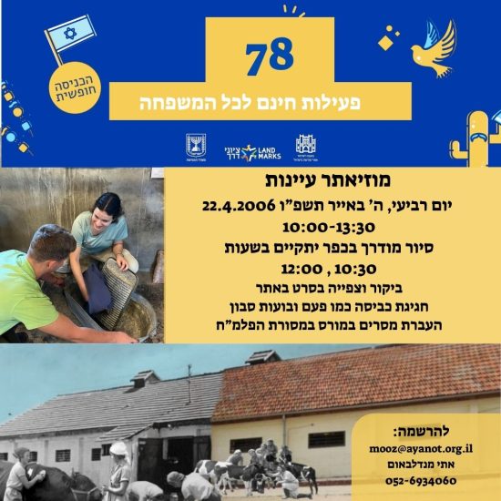 להרשמה: mooz@ayanot.org.il | אתי מנדלבאום: 052-6934060