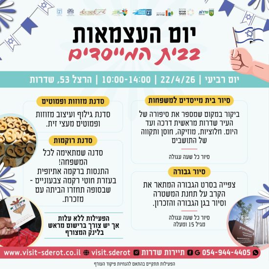 חוגגים עצמאות 2026 בבית המייסדים שדרות עם מגוון פעילויות לכל המשפחה 🎉